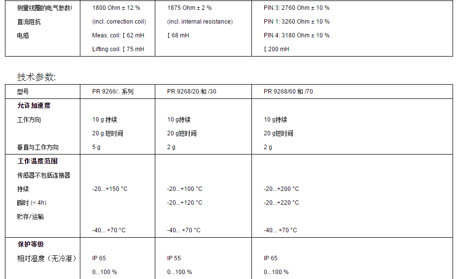 傳感器PR 9268/60 和 PR 9268/70 尤其適用在***溫的環境中。