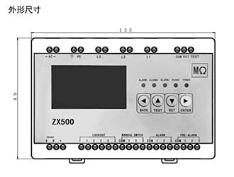 ZX500絕緣監測儀采用直流注入法對電纜或電機繞組等進行絕緣測量,測試電壓為DC500VDC,若設備內相應線路使能,儀器與電路接觸器或斷路器輔助觸點聯鎖控制,實現電機回路通電時絕緣監測儀退出監測與電網分離,線路斷電時絕緣監測儀自動開始對線路進行絕緣監測,本儀表可對三路不同電機進行測量。