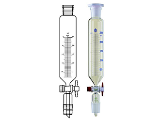 圓柱形式,??符合 根據DIN ISO 4800標準,帶錐形接地插座和錐孔,塑料塞子,刻度,硼硅酸鹽玻璃