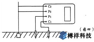 2、測量保護接地電阻時,一定要斷開電氣設備與電源連接點。在測量小于1Ω的接地電阻時,應分別用專用導線連在接地體上,C2在外側P2在內側如圖四所示: