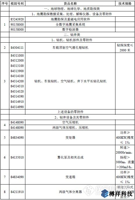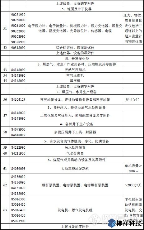 附表:勘探開發煤層氣免稅進口物資清單