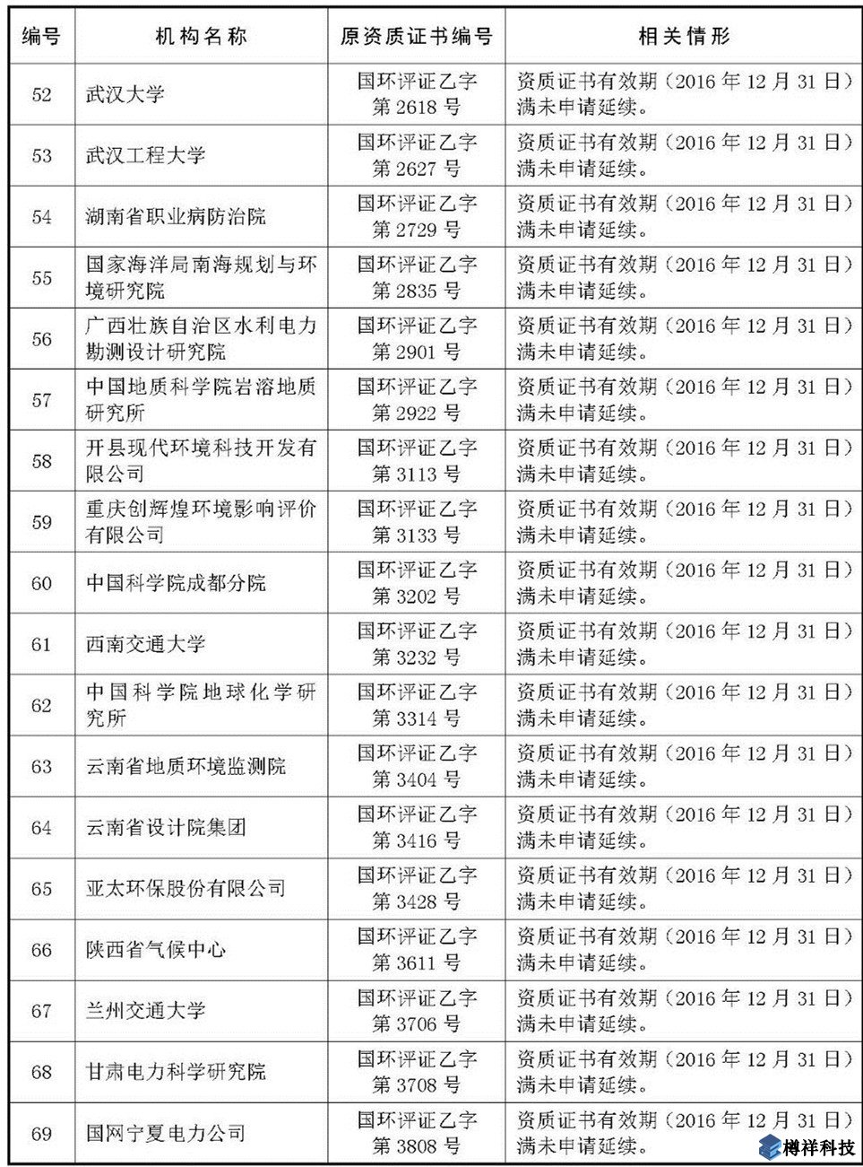 環(huán)境保護(hù)部發(fā)布關(guān)于注銷69***機(jī)構(gòu)建設(shè)項(xiàng)目環(huán)境影響評價資質(zhì)的公告,根據(jù)《建設(shè)項(xiàng)目環(huán)境影響評價資質(zhì)管理辦法》(環(huán)境保護(hù)部令第36號)的有關(guān)規(guī)定,我部對建設(shè)項(xiàng)目環(huán)境影響評價資質(zhì)(以下簡稱資質(zhì))證書有效期滿未申請延續(xù)的69***機(jī)構(gòu)資質(zhì)予以注銷。