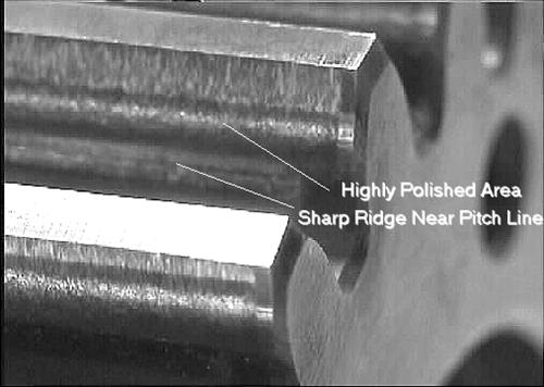 圖6.該照片顯示了齒輪齒側的磨損磨損。