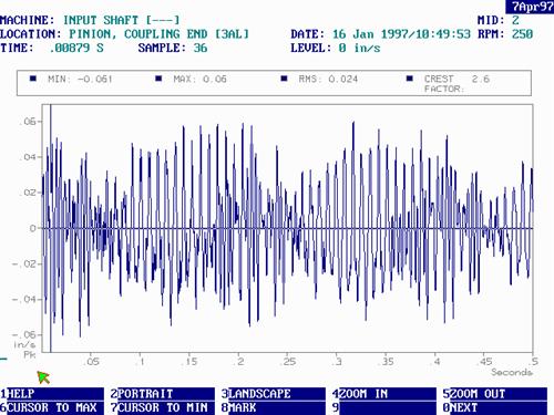 時域信號的同步平均已經存在了很長時間,但在我看來,還沒有被用于機器問題診斷。無論如何,我們決定對變速箱振動特征進行同步平均。這涉及在振動分析儀中使用轉速計衍生的同步觸發器來收集一起平均的一系列波形樣本。其中重要的部分是每個時間記錄的開始必須在所討論的齒輪的旋轉中完全同時發生。